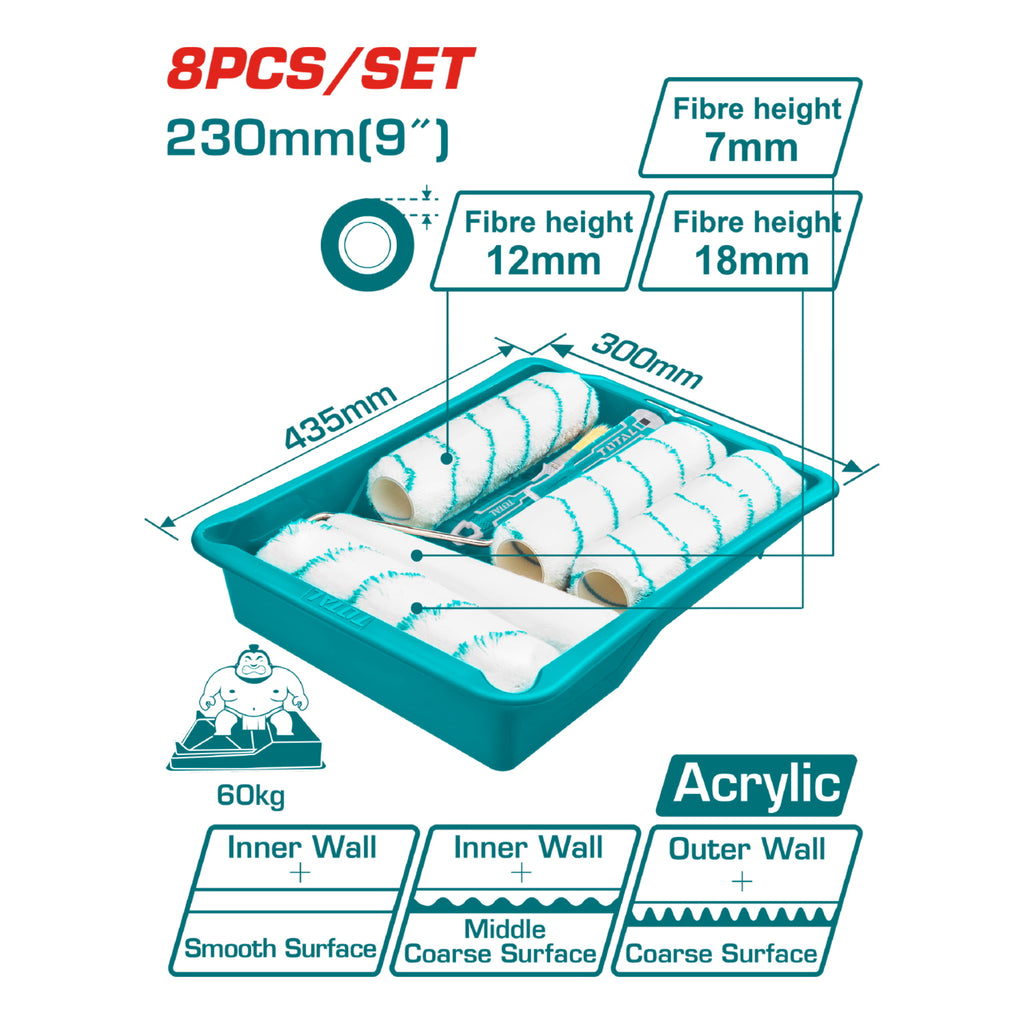 Juego De Rodillos Para Pintar 8 En 1 Con Bandeja De Pintura. Para Interiores Y Exteriores.