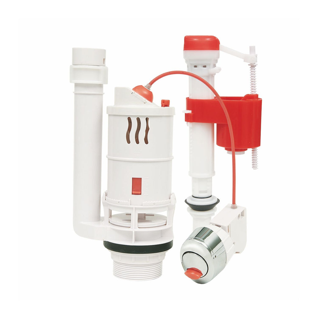 Kit incluye válvula de llenado y descarga para W.C. o Sanitario con sistema DUAL de 2”, así como su botón lateral