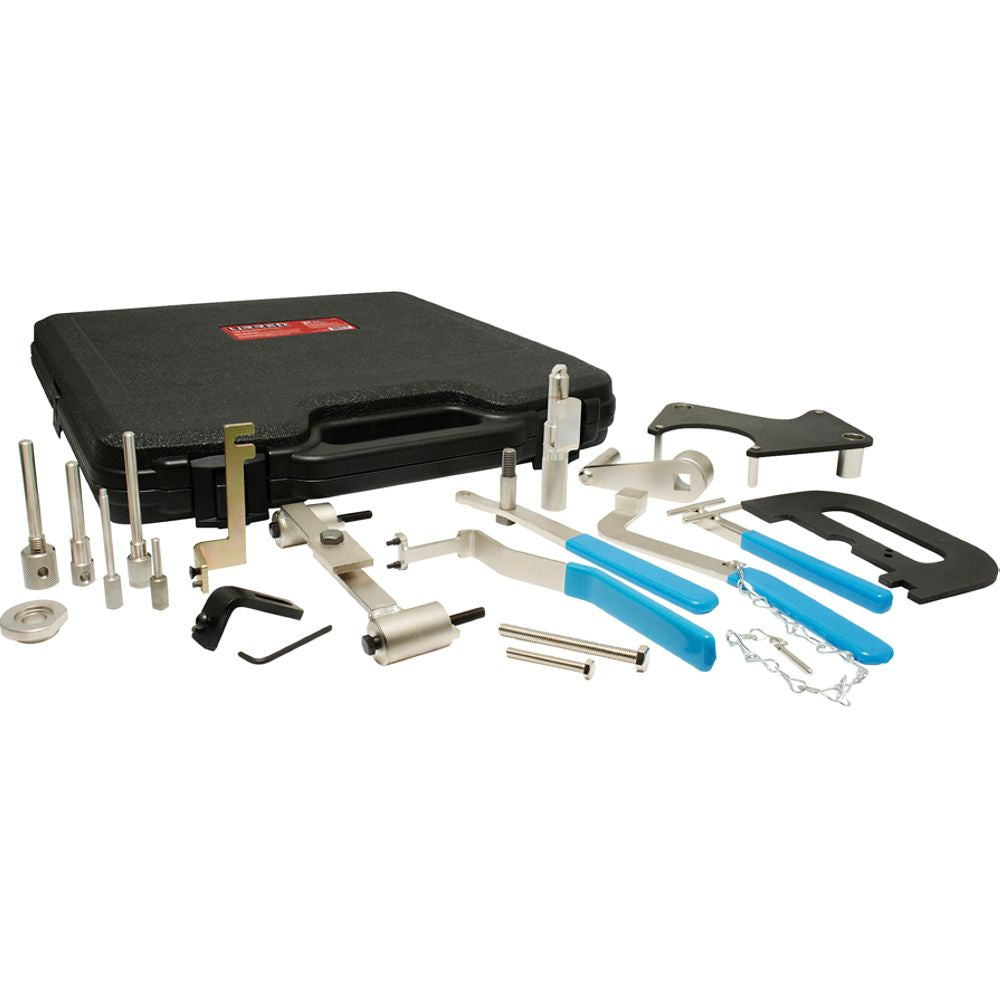 -Incluye seguros y pines para bloquear el árbol de levas, el cigüeñal, la polea de la bomba de inyección y la polea de tensión de motores a gasolina y diesel