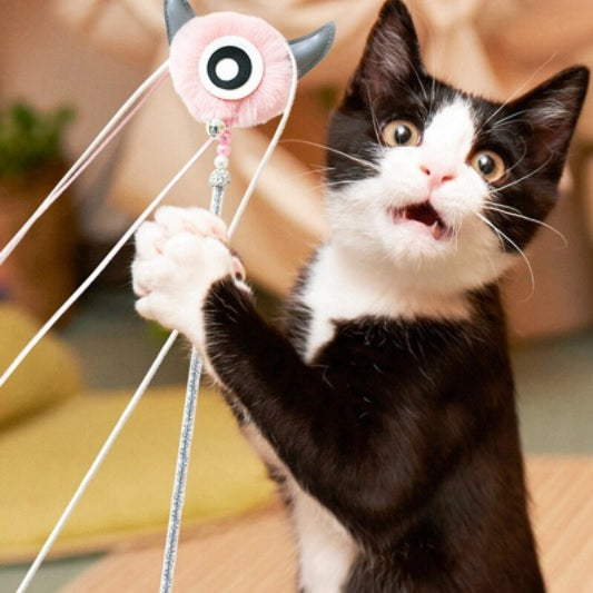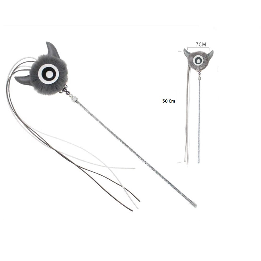Juguete Para Gato Varita De Algodon Y Cintas. Color Gris. Tamaño 50Cm