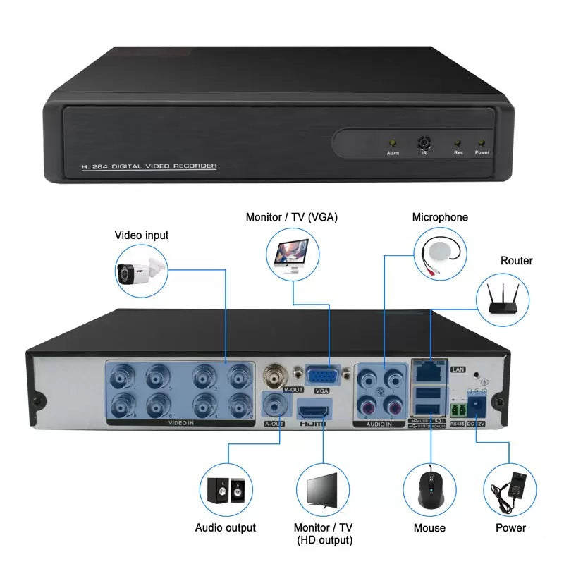 | Características | Incluye DVR de 4 canales AHD de 1080P.Detector de movimiento.Rango de 20M de distancia. |