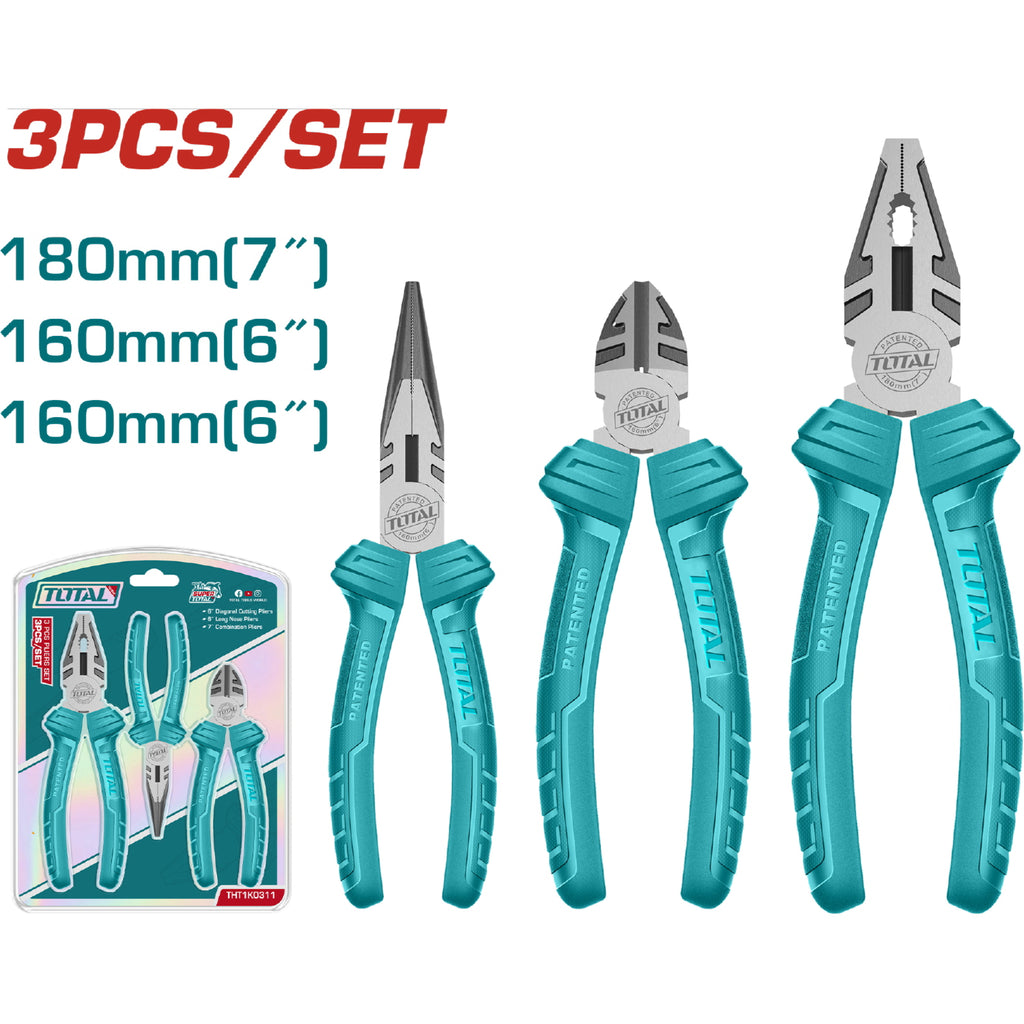 Kit De Alicates De 3 Pzas.Combinacion 7", Punta Larga De 6",Corte Diagonal De 7"