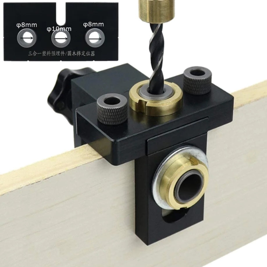 Set de plantilla guía multiusos para perforaciones de agujeros, para carpintería. Con clip de posicionamiento, guía de perforación ajustable, localizador de punzón. Incluye accesorios.