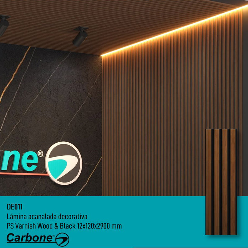 Lámina Acanalada Decorativa PS Varnish And Black 12X120x2900 Mm
