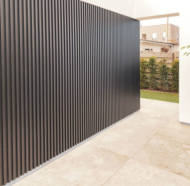 Lámina acanalada decorativa WPC Exteriores Wengue 26x219x2900 mm - Compuesta por madera y PVC resistente al calor, Apto para temperaturas desde -40 A 60 grados centígrados, hidrófugo.