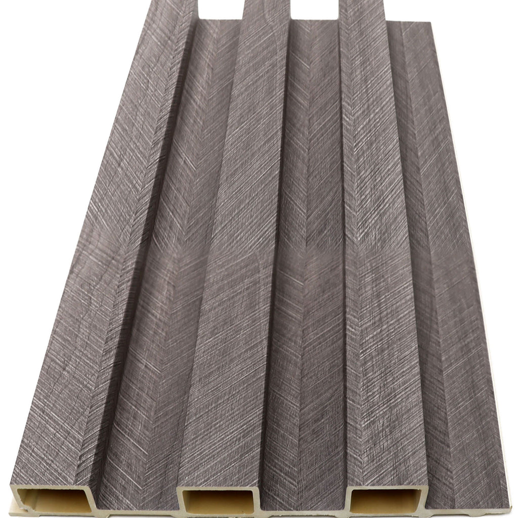 Lámina acanalada decorativa WPC Textured Grey 25x195x2900 mm - Compuesta por madera y PVC resistente al calor, humedad, y arañazos.