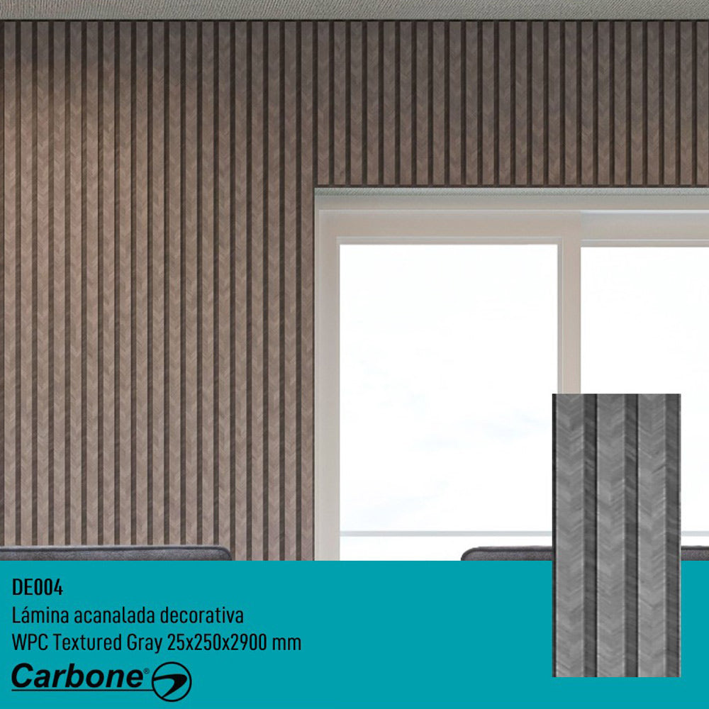 | *Nombre | Lámina acanalada decorativa WPC Textured Grey. 25x195x2900 mm |
