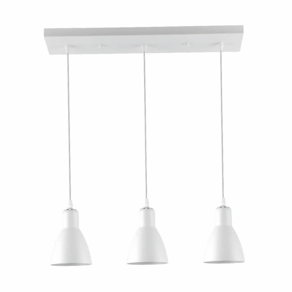 Lámpara colgante en color blanco con 3 bases para una bombilla de tipo E27 suena como una opción acogedora y elegante para iluminar tu espacio. Material de Hierro de alta calidad con una dimension de 550x110x1400mm, voltaje de 110-240v 50-60Hz