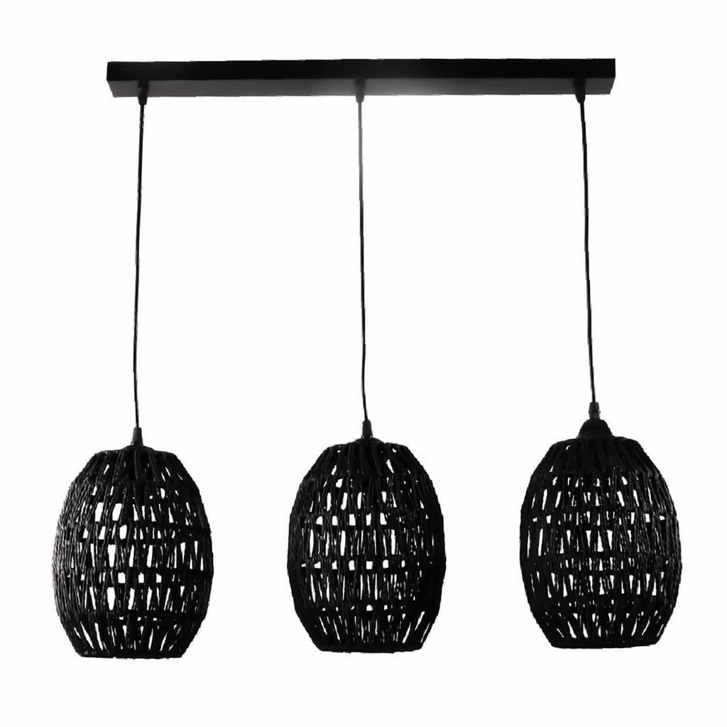 Lámpara colgante de ratán negro con 3 bases para una bombilla de tipo E27 puede agregar un toque natural y orgánico a tu espacio, mientras proporciona una iluminación suave y acogedora. El ratán negro es una elección elegante y versátil que puede complementar una variedad de estilos de decoración, desde rústico hasta bohemio o incluso moderno. Material de metal y ratán de alta calidad con una dimension de 350x1235mm, voltaje de 110-240v 50-60Hz