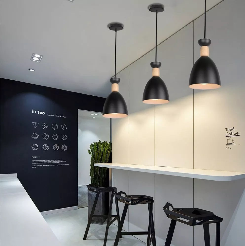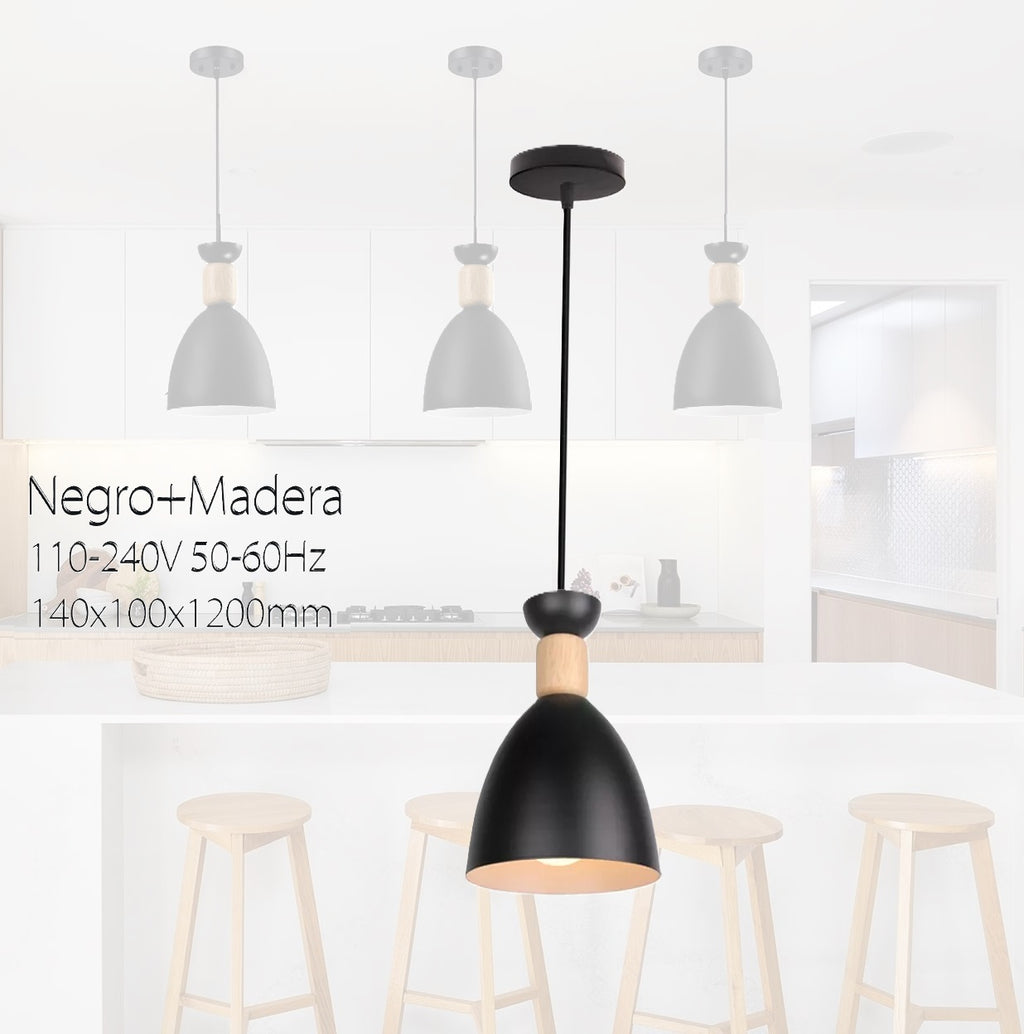 Una lámpara colgante negra y madera con una base para una bombilla de tipo E27 puede ser una elección moderna y versátil para iluminar tu espacio. El color negro es atemporal y se adapta bien a una amplia variedad de estilos de decoración, desde moderno y minimalista. Material de metal y madera de alta calidad con una dimension de 140x100x1200mm, voltaje de 110-240v 50-60Hz