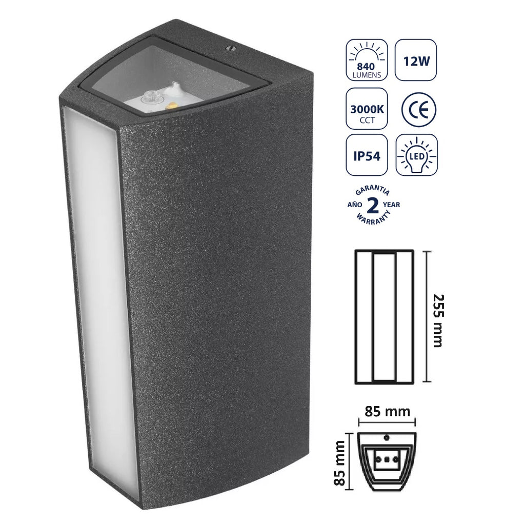 Lámpara De Pared Exterior Negra LED 12W - Luz Cálida 3000K, 840Lm. Eficiencia Energética.Luminaria.