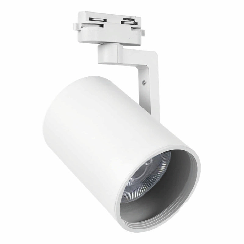 LAMPARA DE RIEL PAR30 1XE27 BLANCA lámpara de riel PAR30 con base E27 y acabado blanco es una opción versátil y funcional para la iluminación de espacios comerciales o residenciales, ofreciendo flexibilidad en la iluminación, un diseño estético atractivo y facilidad de instalación. Tamaño 96*100 milimetros, voltaje 110-240V 50-60Hz, material hierro, dirigible, : Las lámparas de riel PAR30 son ideales para iluminar áreas de exposición en tiendas minoristas, galerías de arte o museos, así como para resaltar elementos decorativos en espacios residenciales como salas de estar, comedores o pasillos.
