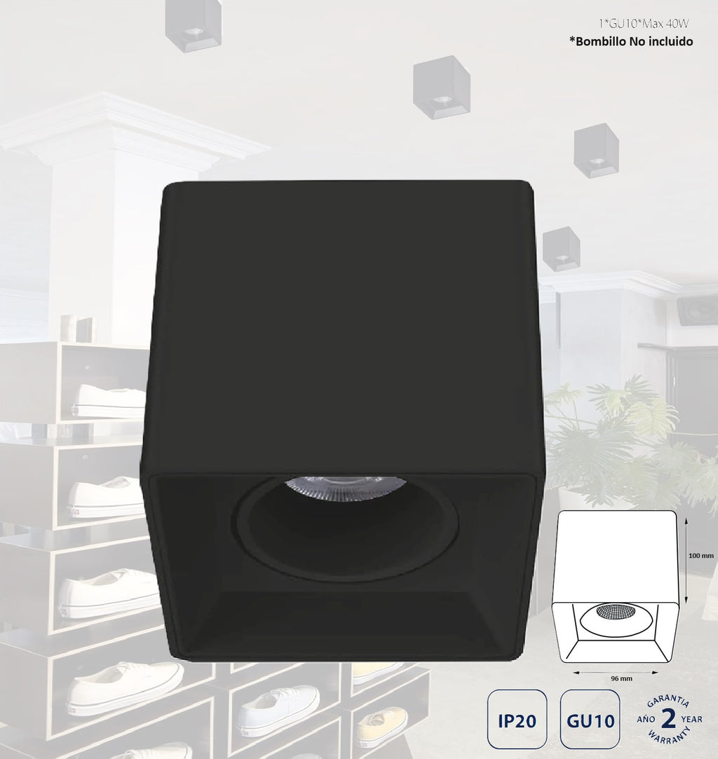 Lámpara De Techo Negra Base 1XGU10, Ajustable .Minimalista Ideal Interiores. Foco Cuadrado Ajustable. No Incluye Bombillo
