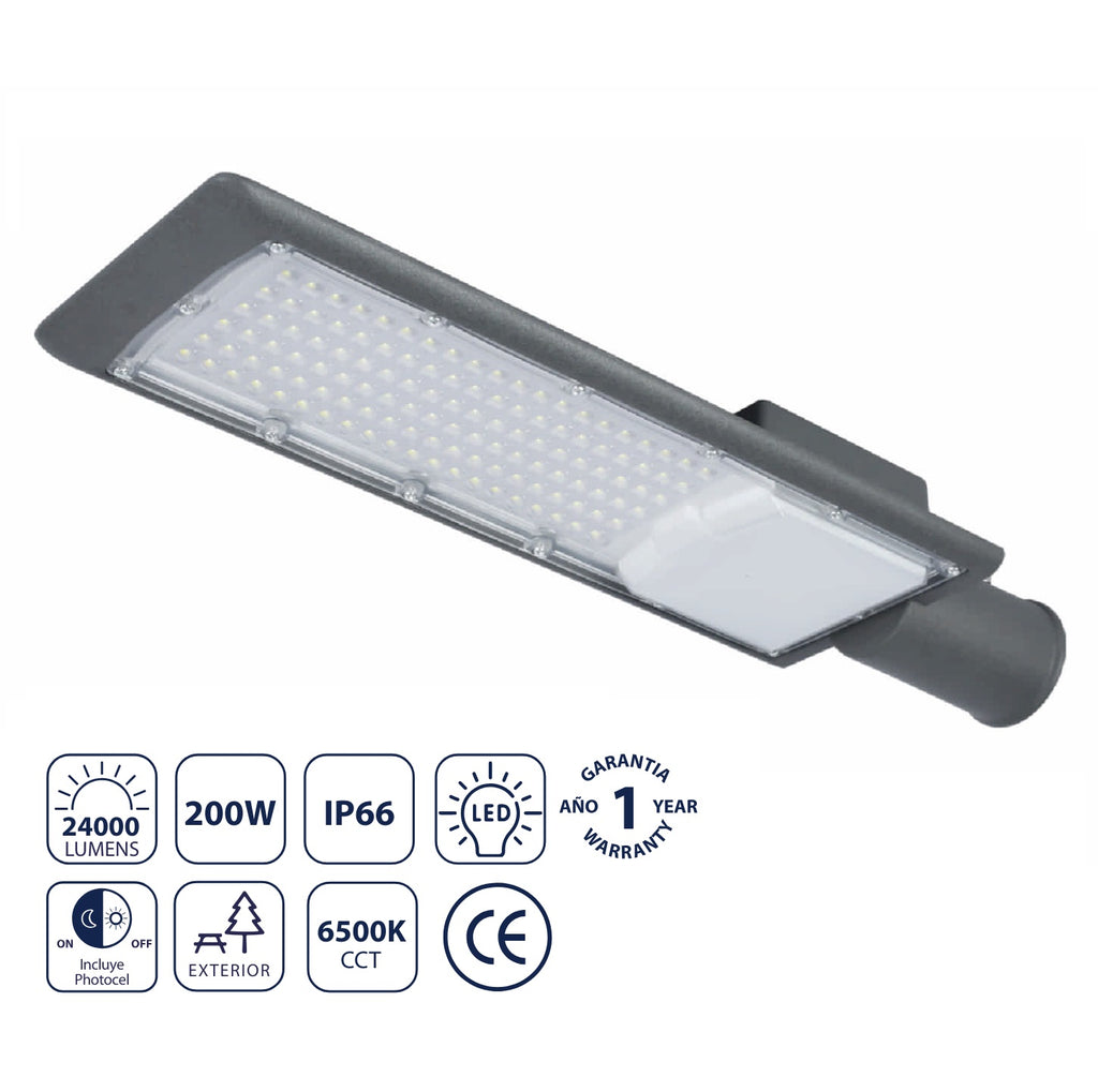 | *Nombre | Lámpara LED de Calle 200W 24000lm 6500K Fría, Aluminio, Resistente Clima, Ahorro Energético. Luminaria |