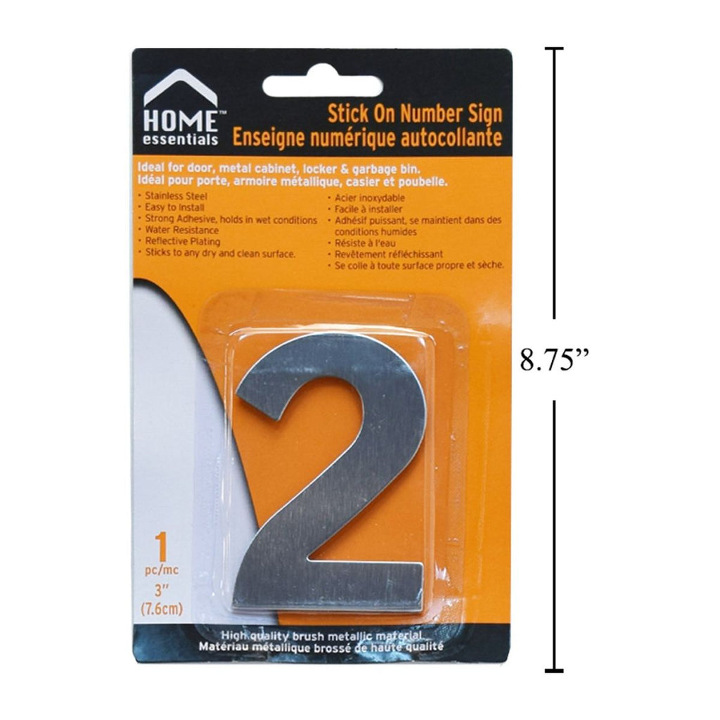 Letrero Señal numérica adhesiva de 3'' #2 Acero inoxidable