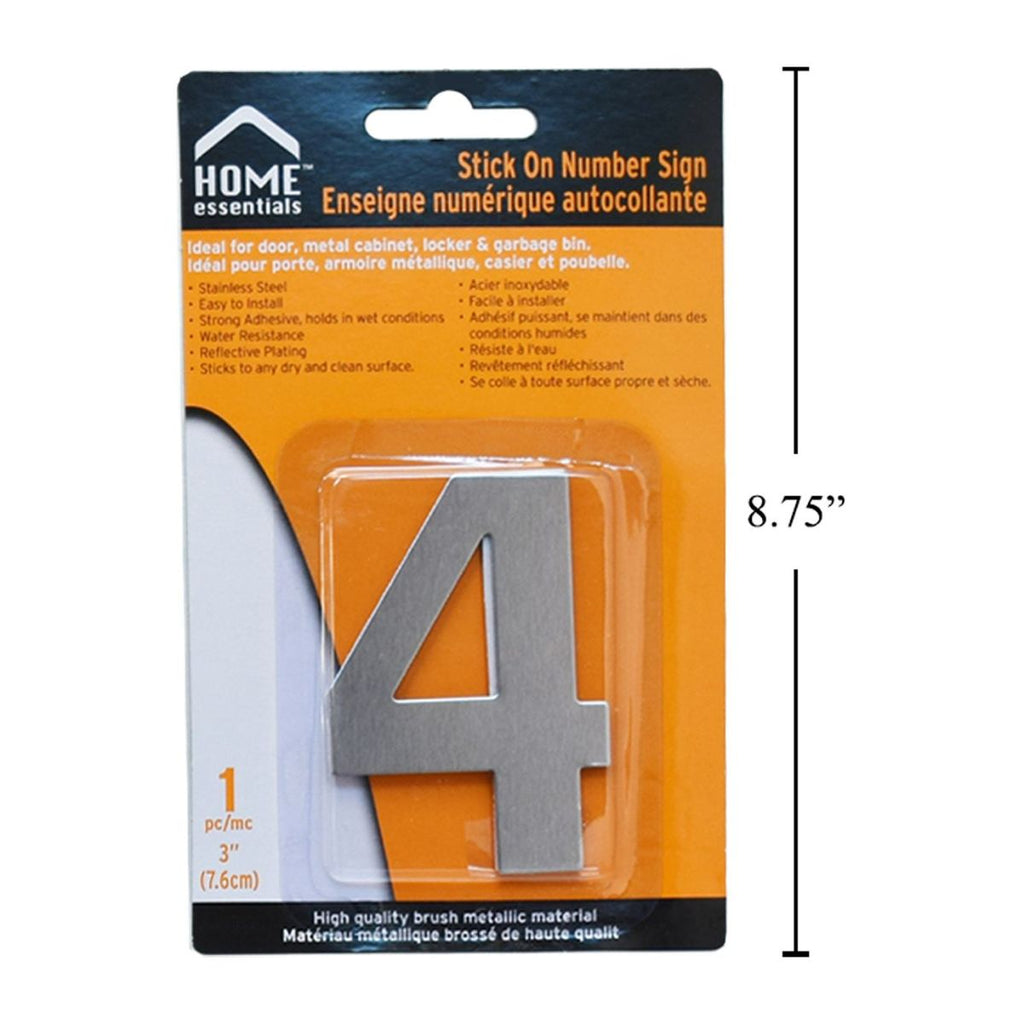 Letrero Señal numérica adhesiva de 3'' #4 Acero inoxidable