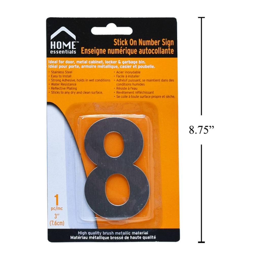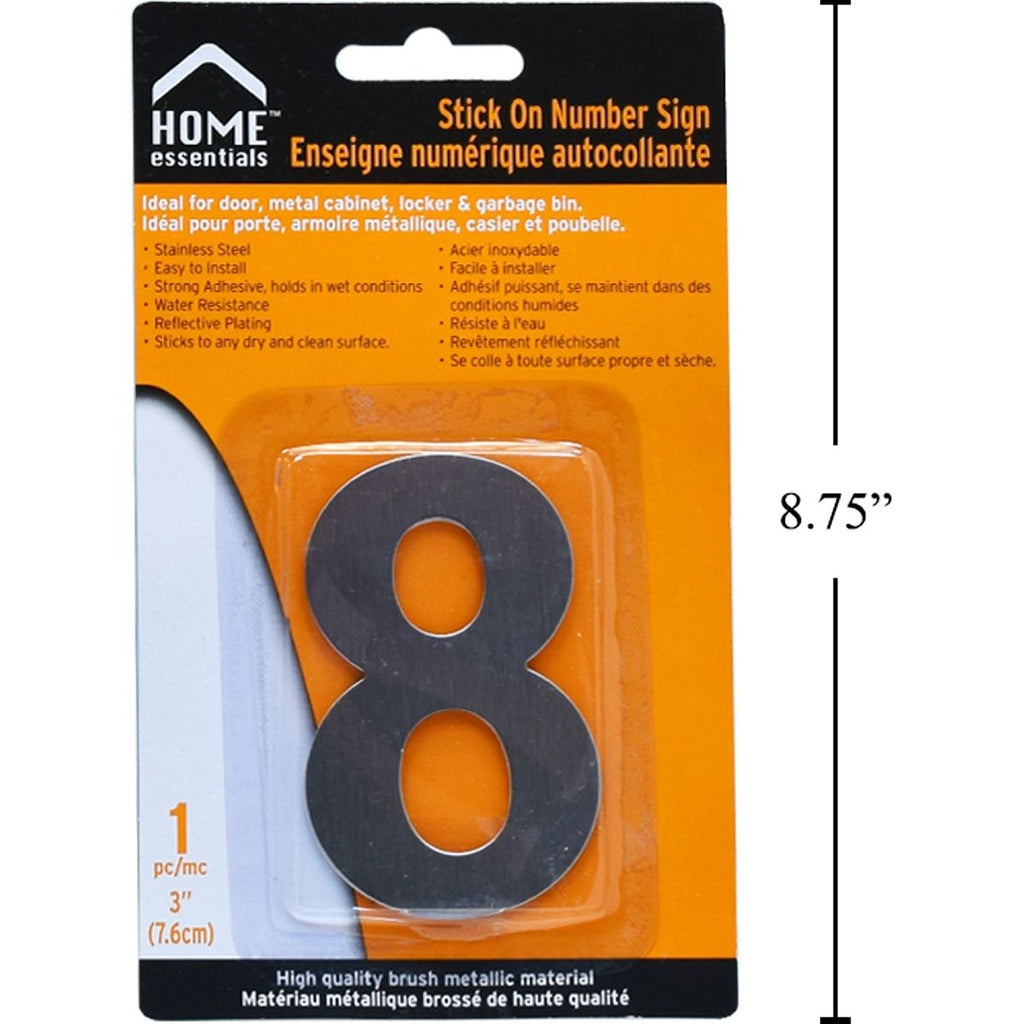 Letrero Señal numérica adhesiva de 3'' # 8 Acero inoxidable