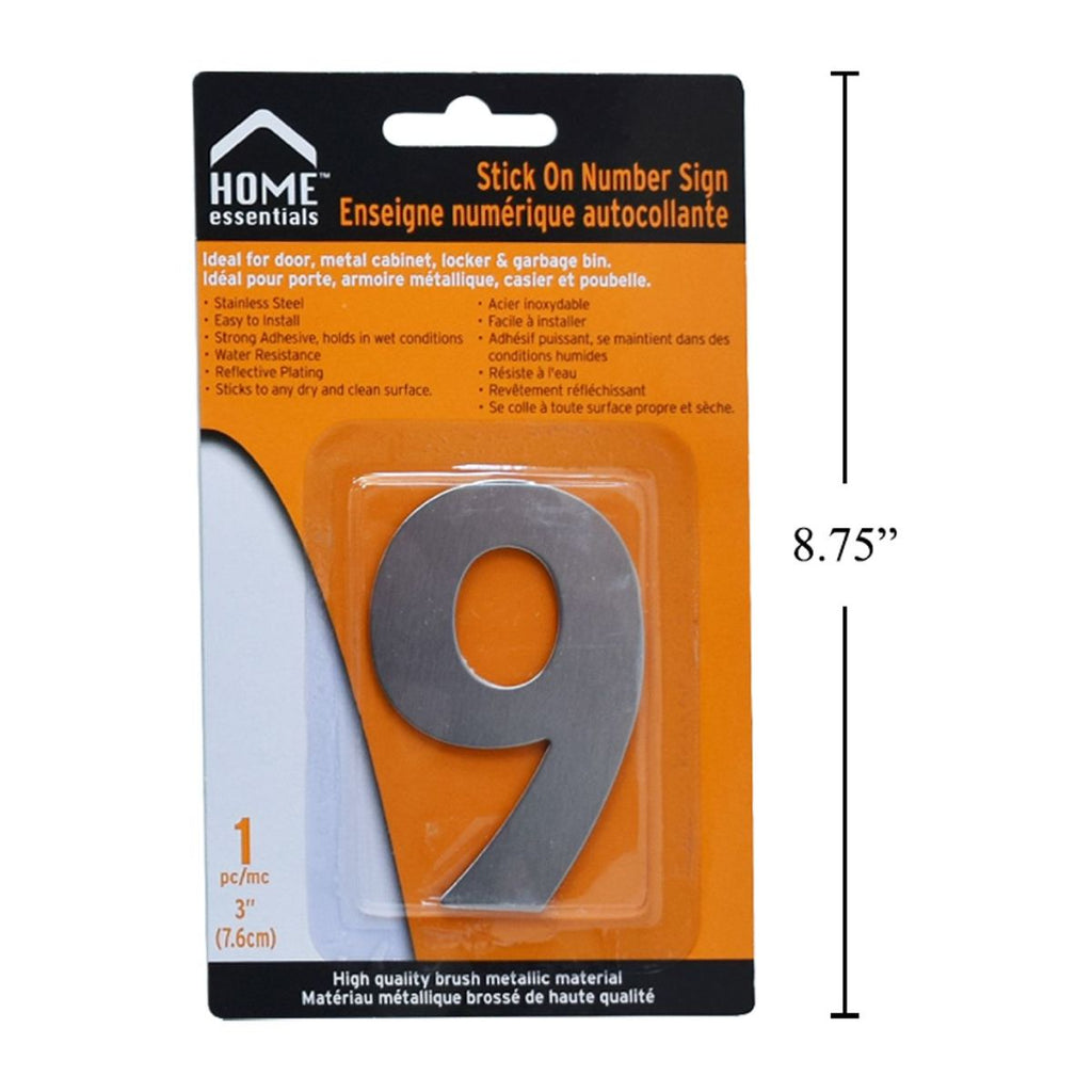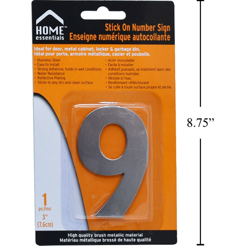 Letrero Señal numérica adhesiva de 3'' # 9 Acero inoxidable