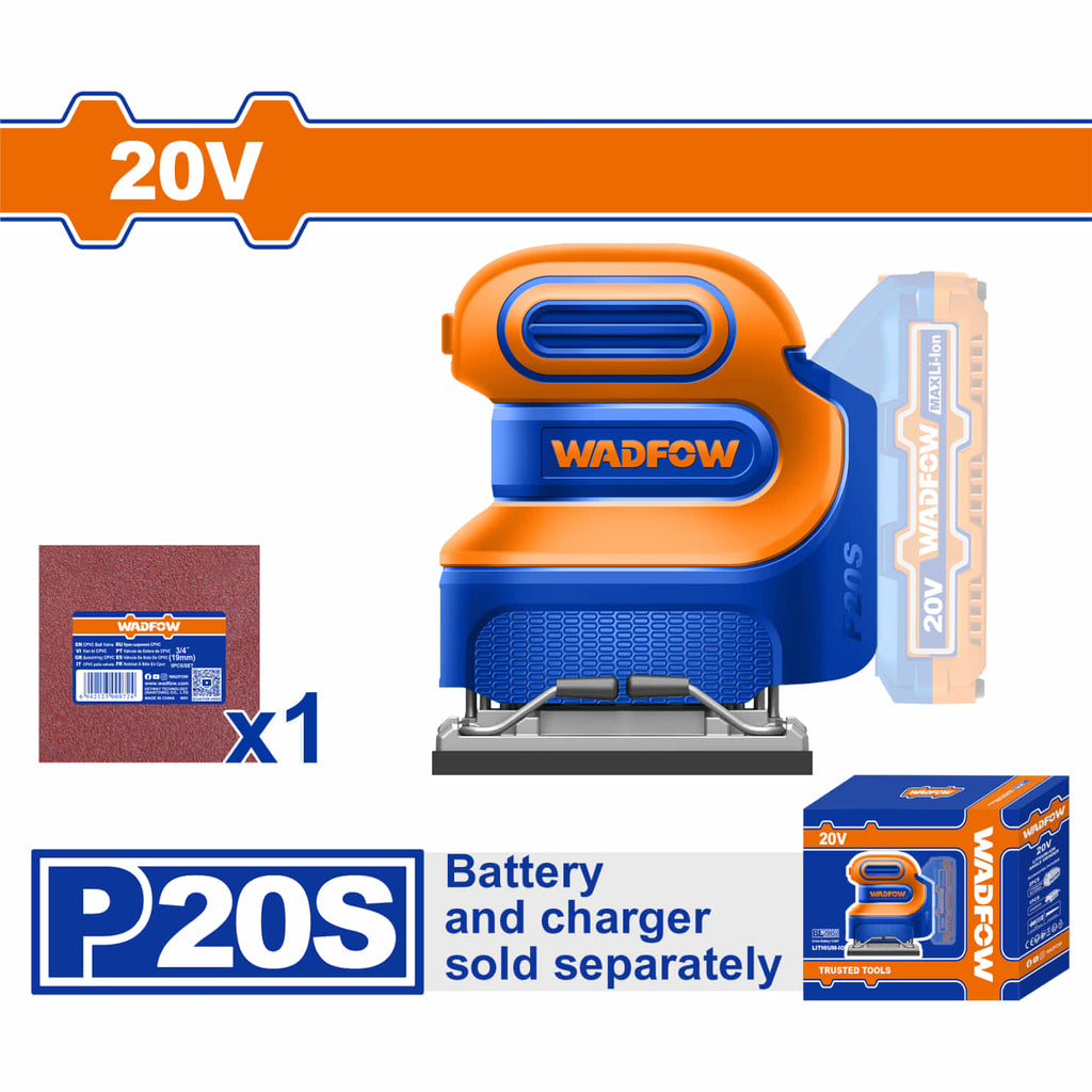 | Características | Lijadora de Mano Inalámbrica 20V Incluye 1 hoja. Batería y cargador por separado. Velocidad sin carga: 12000rpm. Incluye: 1 hoja de lija. |