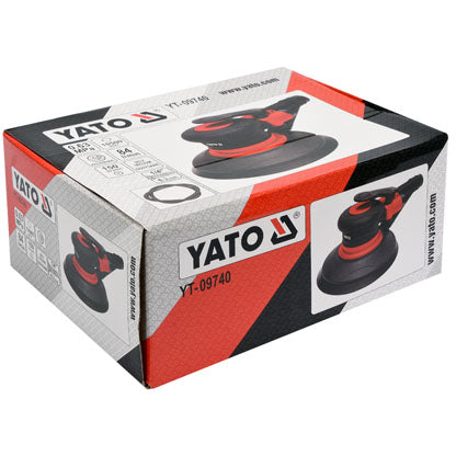 Yato Lijadora Neumática Orbital - 6'' Normal Escape 360 Posterior; Armazón De Aluminio Fundido Con Mango De Agarre Suave; Mango Diseñado Con Puntos Convexos Y Curva Cóncava; Gatillo Pa6; Patrón Orbital 5Mm; Accesorios: Manguera Y Bolsa De Limpieza Lijador