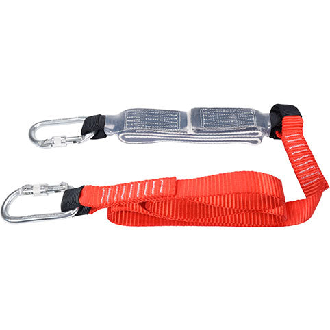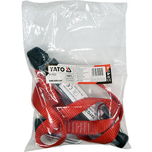 El amortiguador de seguridad con correa y dos mosquetones YT-74227 es un elemento del sistema anticaídas que conecta el arnés de seguridad con el punto de anclaje. El amortiguador está hecho de una cinta de poliéster debidamente cosida. Al detener una caída, las costuras especialmente diseñadas se rasgan gradualmente, lo que reduce la velocidad de la caída