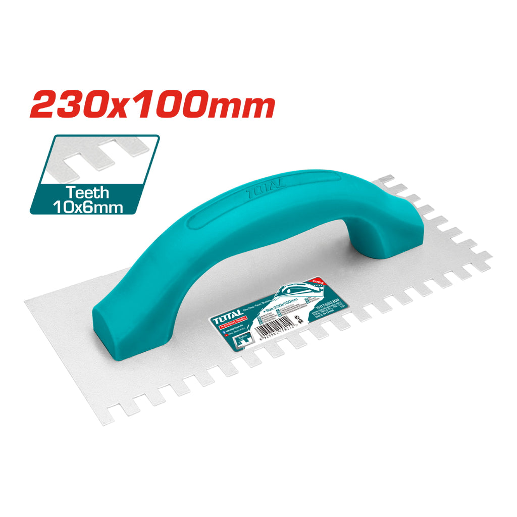 Llana de yeso dentado (mango de plástico) 230x100mm, hoja de acero al carbono. Presentación de etiqueta.