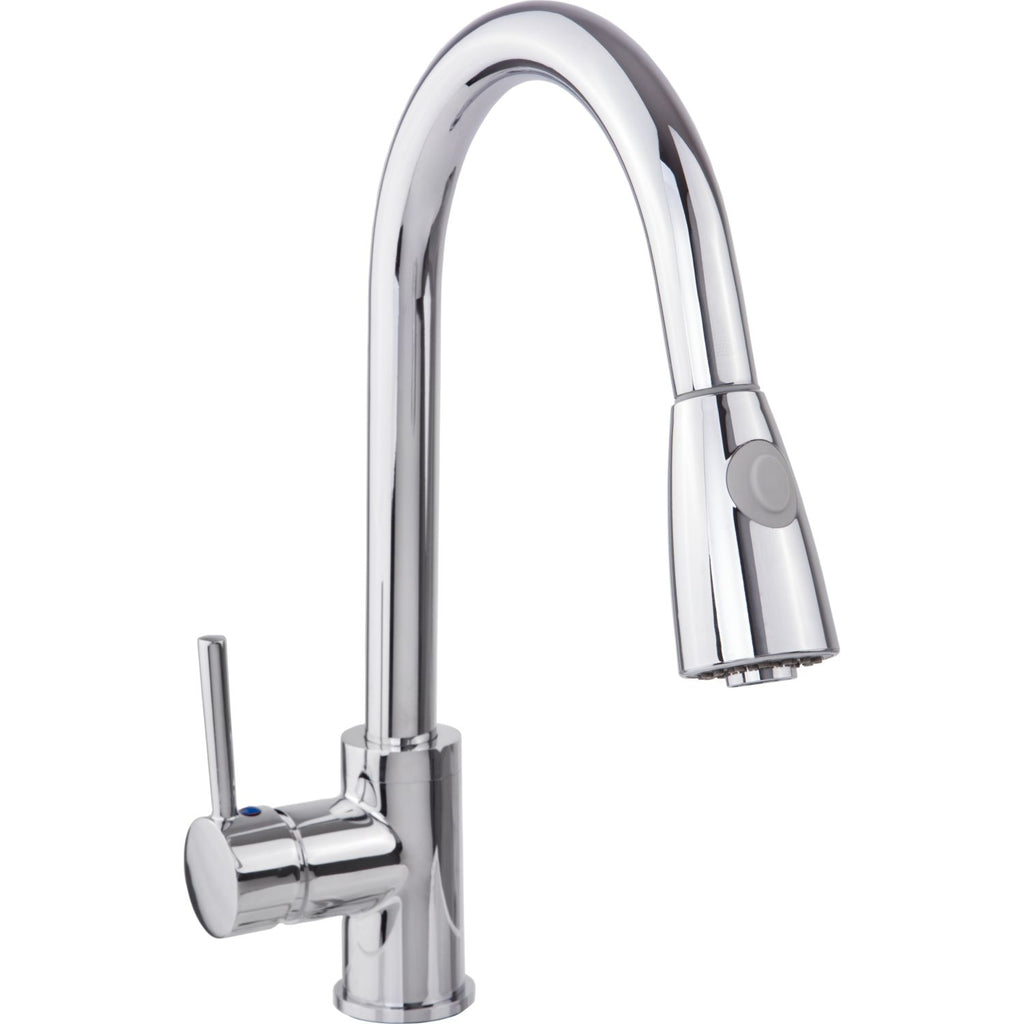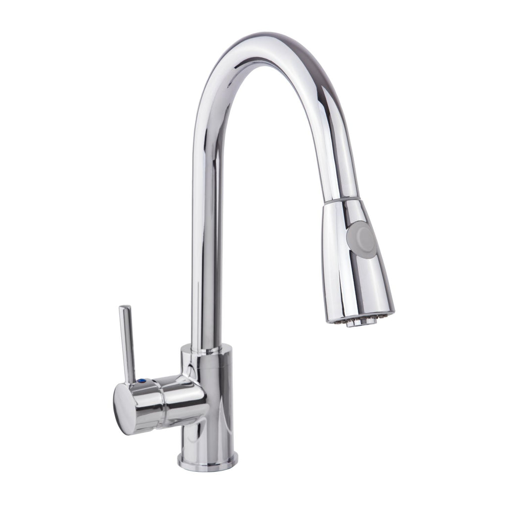 Monomando con cuerpo en latón. Acabado cromo. Nariz  retráctil y/o extraíble. Cartucho tipo cerámico. Trabaja a  baja presión  (0.2 a 1 kg/cm2). Incluye dos mangueras para su instalación. Garantía de 3 años sobre defectos de fabrica