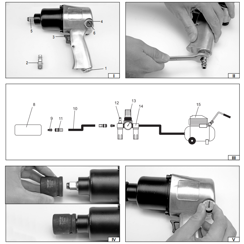 | Advertencia | Durante el trabajo con una herramienta neumática, se recomienda observar siempre las normas fundamentales de seguridad de trabajo |