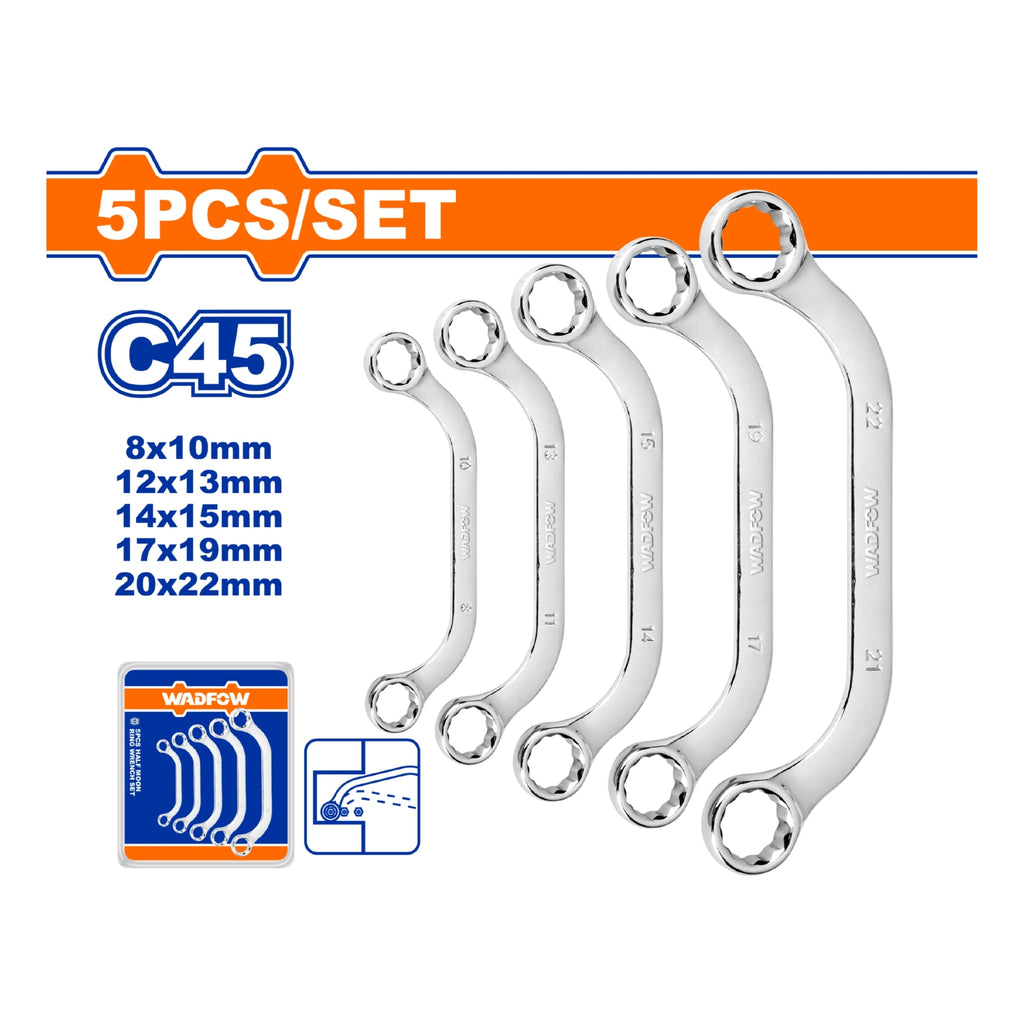 | *Nombre | Llaves Medialuna. Set de 5 pzas. Tamaño:8-22mm. Acero al carbono #45. Pulido. |