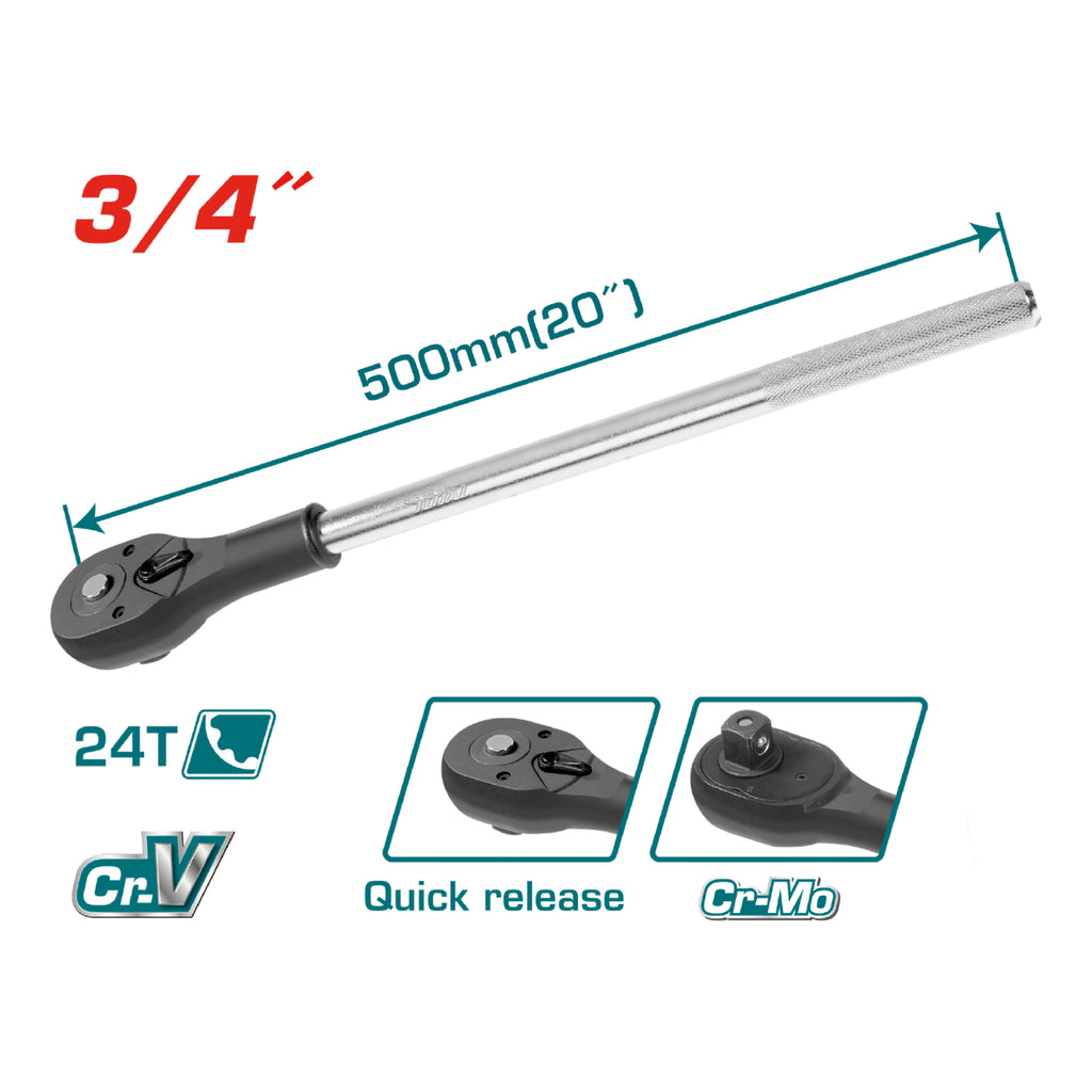 Mango Ratchet Con Liberación Rápida. 3/4" Cr.Mo. 500 Mm (20") 24T.