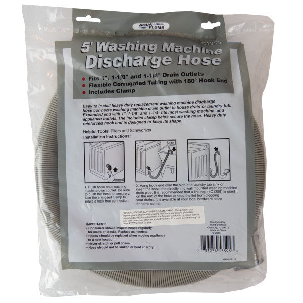 Manguera de desagüe de plástico corrugado de 5 pies para lavadora