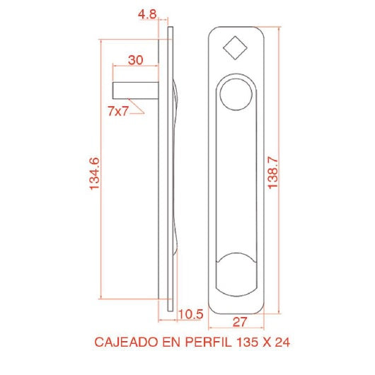 Manilla Embutida Operador Multipunto. Cuadrillo de 8X8. Acabado Pintado Negro