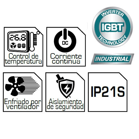 | Diametro de electrodos | Trabaja con electrodos de 1.6 - 4.0 mm / 1 1/6" -5/32" |