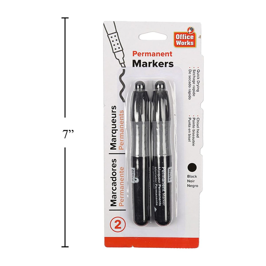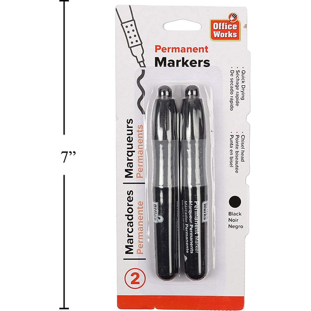 Marcador permanente de 2 piezas, negro, cabeza de cincel