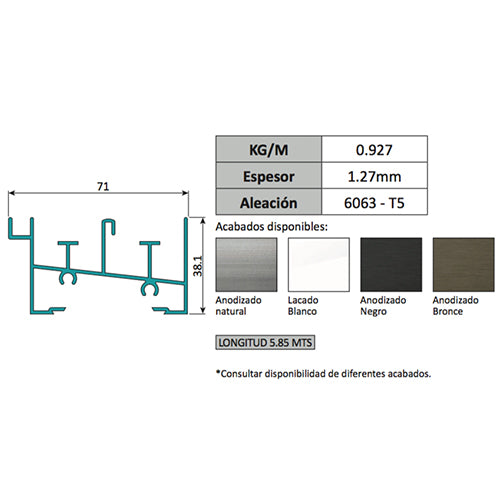 Marco Inferior Ventana VC mosquitero. Espesor 1.27 mm Largo 5.85 mts. Acabado Anonizado Bronce VC122