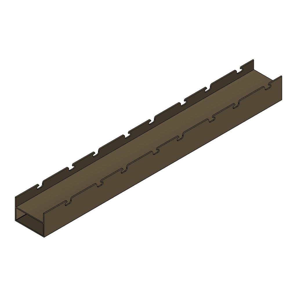 Marco mecanizado reforzado para Montaje de Louver modelo U128 y U128.1. Espacio Visible 3.4 mm. Paso 0. Espesor 1.6 mm. Largo 5.85 mts. Acabado Anodizado Bronze 15 Micron