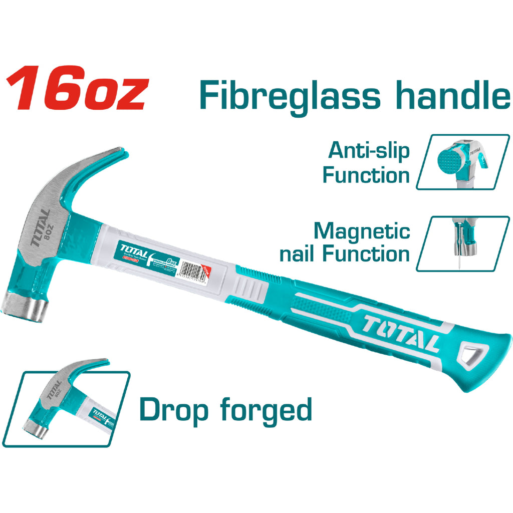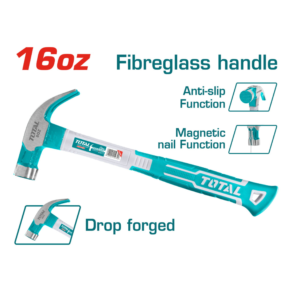 Martillo de Orejas de Acero #45 al Carbono Forjado de 16oz/450g.Tratamiento térmico. Mango de fibra de vidrio.