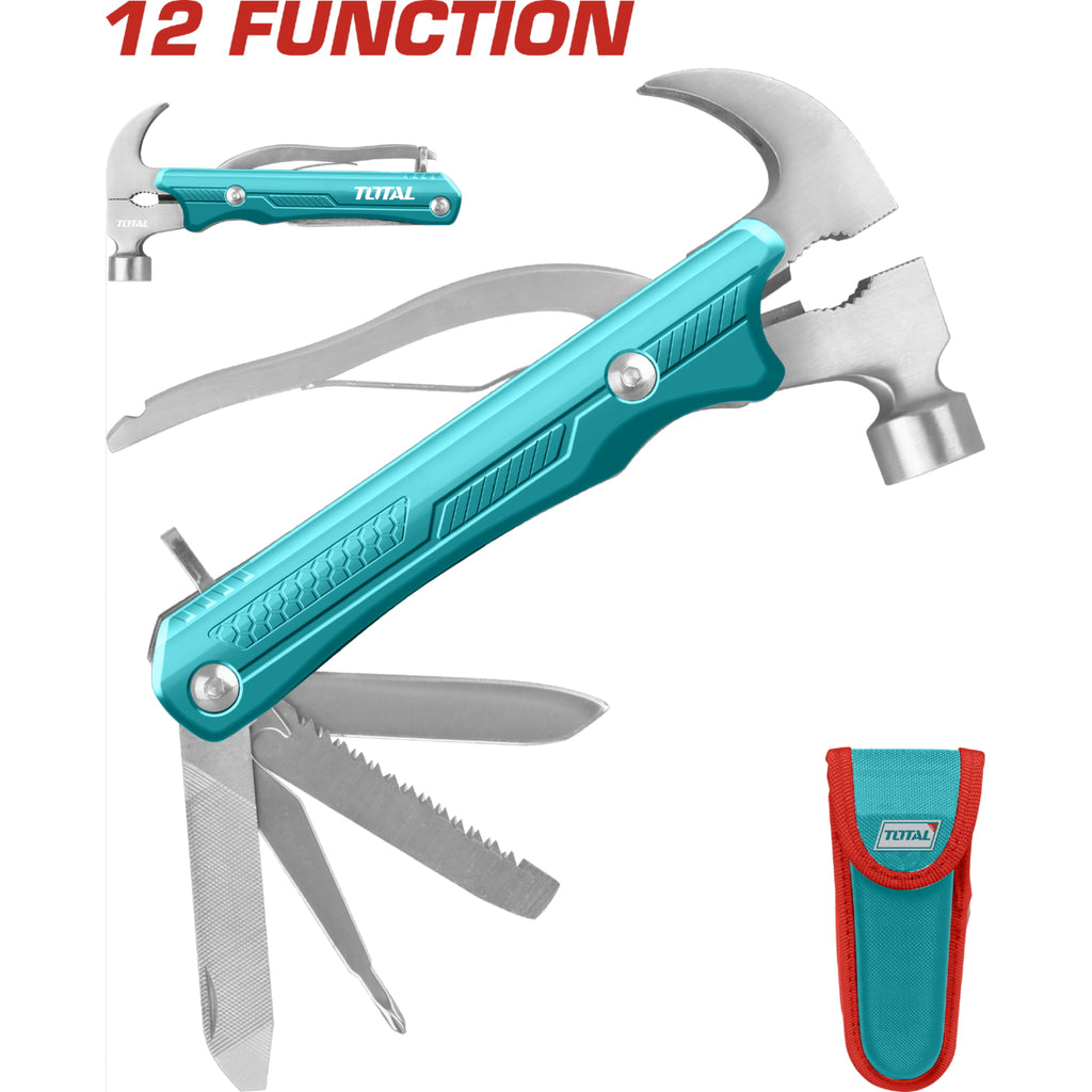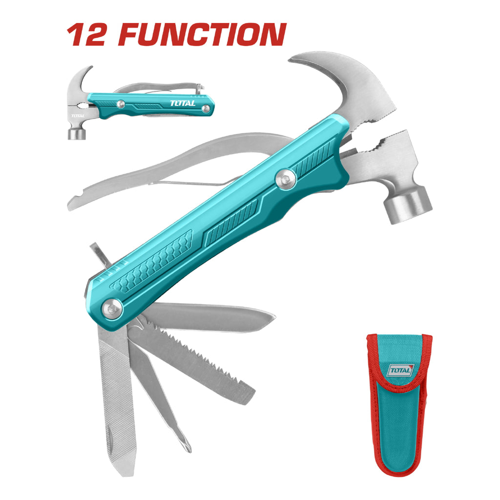 Martillo multifuncional con Mango de Aluminio Fuerte. 12 Funciones.1. Martillo de Orejas 2. Alicate de punta plana. 3. Alicates regular 4. Cortador de alambre. 5. Cuchillo Grande 6. Sierra para madera. 7. Gacho Extractor. 8. Destornillador Phillips. 9. Lima de Metal. 10. Lima de Madera. 11. Destornillador SL5 12. Llave hexagonal.
