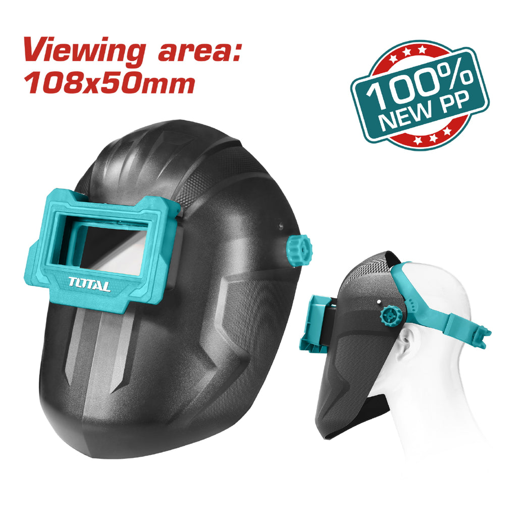 Mascara de soldador. Material 100% PP. Medida de vidrio 108x50x3 mm de ventanilla movible.
