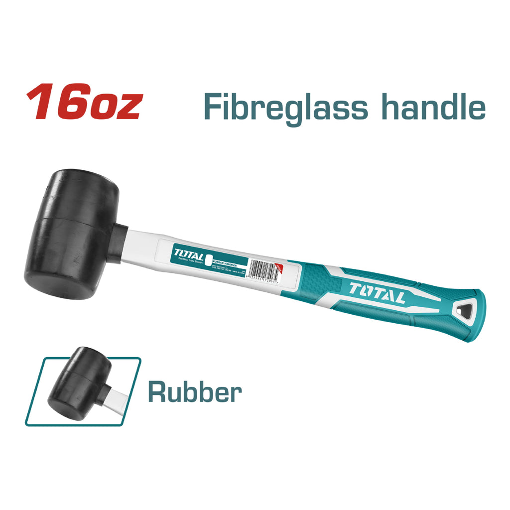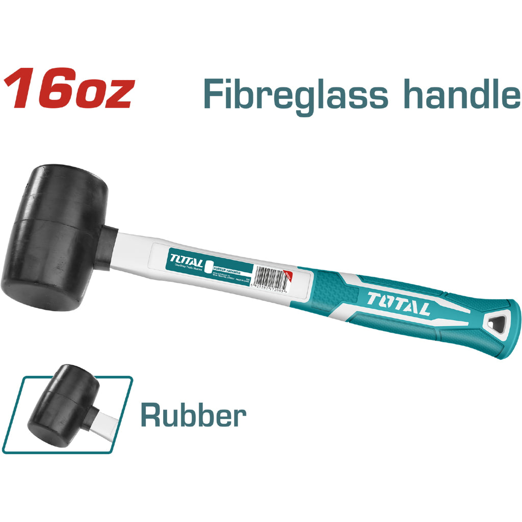 Mazo de goma 16oz/450g. Mango de fibra de vidrio.