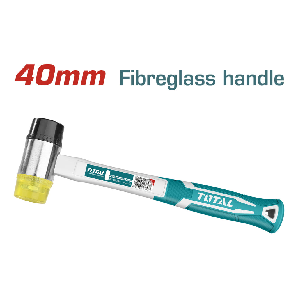 Mazo de goma y plastico. Diametro 40mm. Mango fibra vidrio.