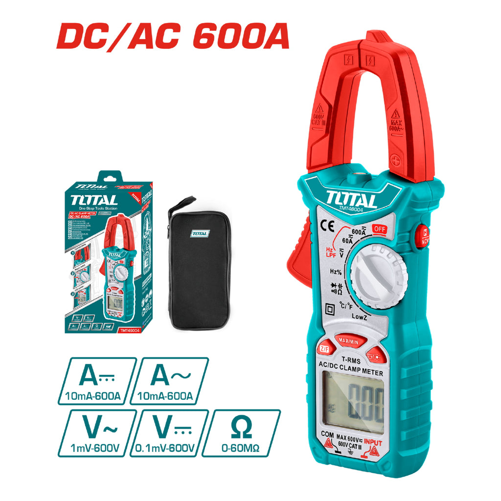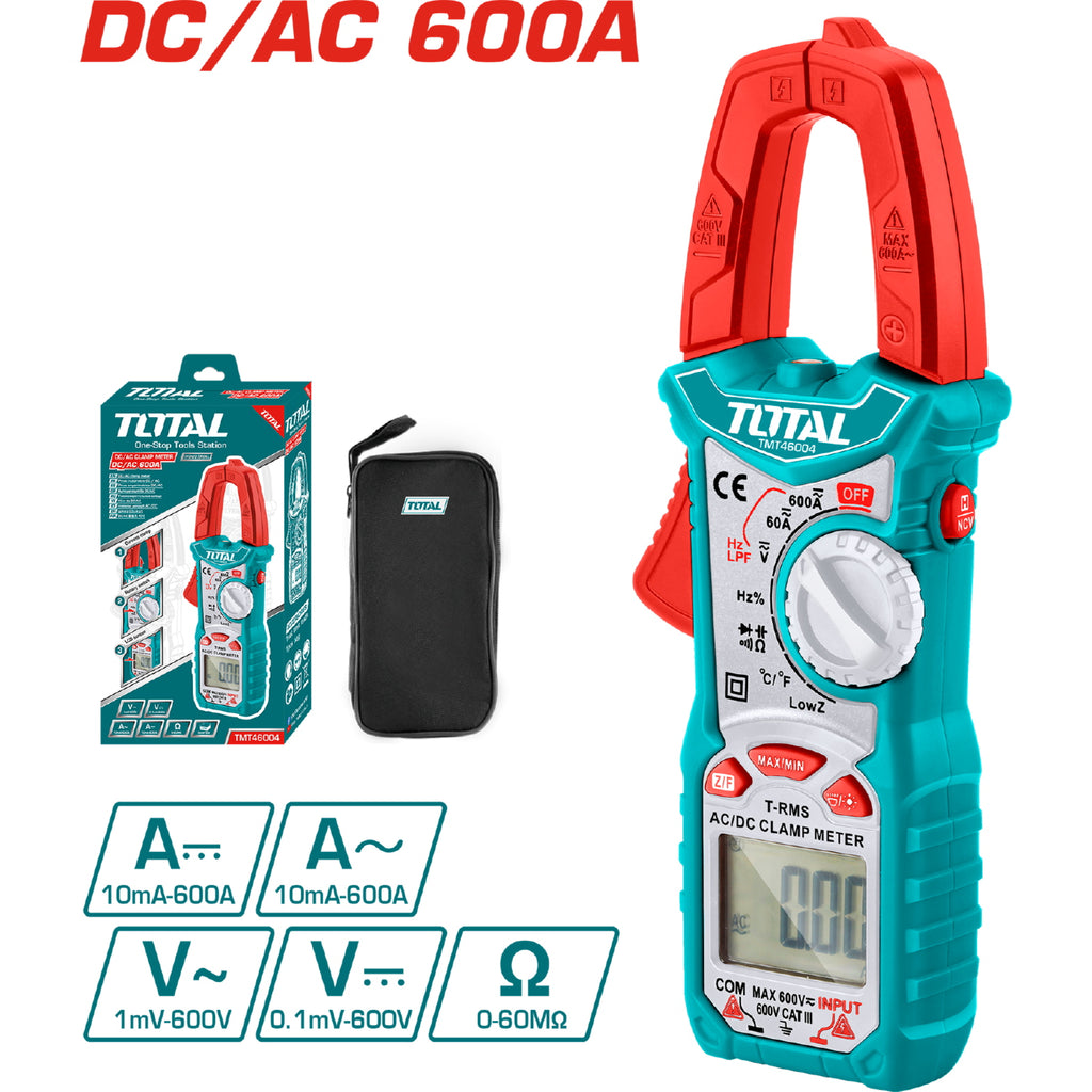 Medidor de abrazadera digital AC/DC, Pantalla de 6000 dígitos, Prueba de sonda/RMS/LPF verdadero función de retroiluminación. Con función de luz de flash Con función de indicación de batería baja. Presentación caja color.