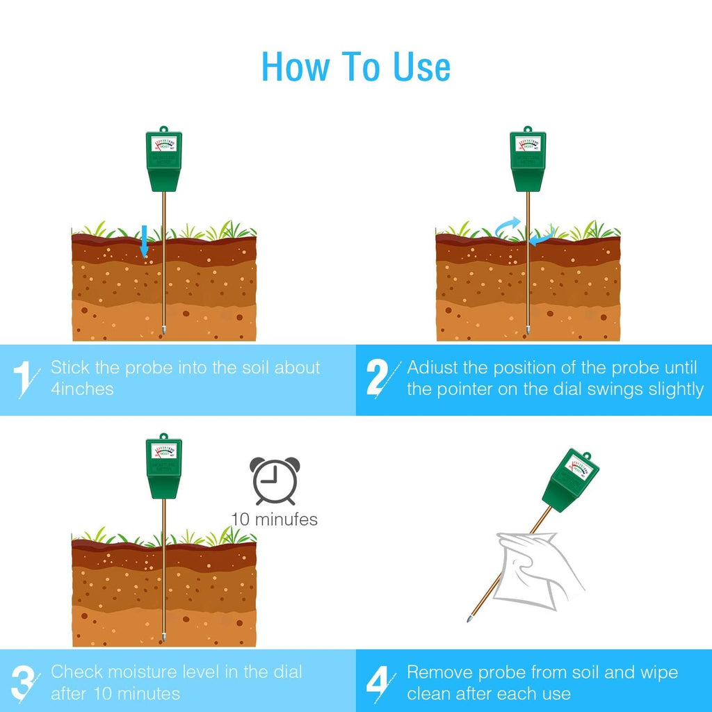Fácil de usar, simplemente inserta la punta del medidor de humedad de la planta en el suelo de 4 a 6 pulgadas (2/3 de la sonda), y obtendrás tu lectura.