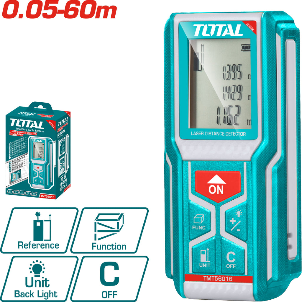 (Modelo Mejorado) Medidor de laser rango de 0.05 -60 mts. Exactitud ±2.0mm. 620~690nm, <1mW IP54. baterías. AAA 2x1.5V.(1 año)
