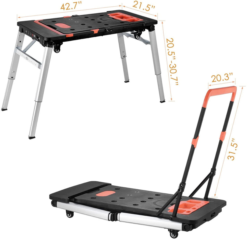 7 funciones prácticas banco de trabajo, caballete, andamio, plataforma rodante, camilla para mecánico, mesa para carpintería, etc.