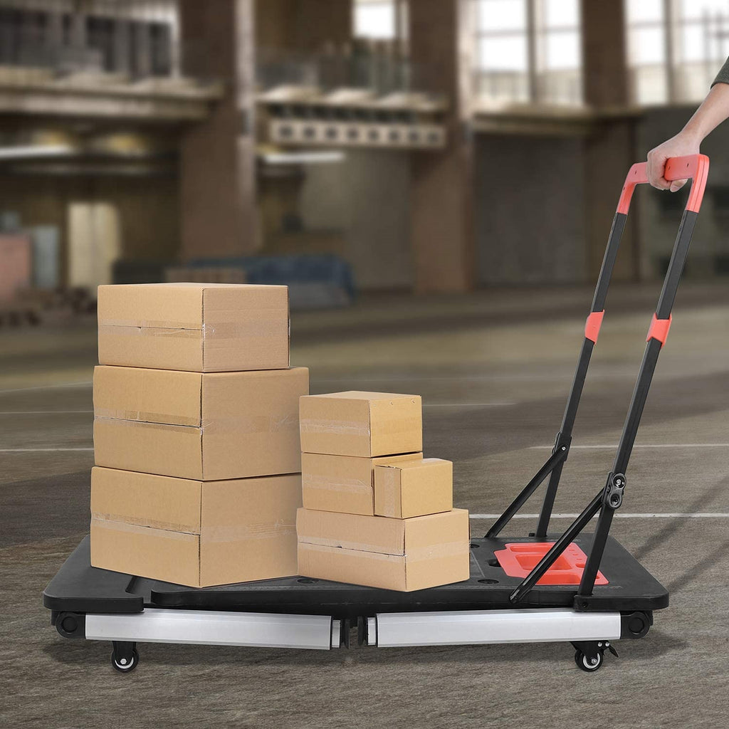 No requiere montaje y se puede configurar en una plataforma en cuestión de segundos, ahorrando espacio en tu casa y garaje. El mango y el orificio de remolque insertados lo hacen portátil y se puede usar para mover carga de cualquier lugar sin complicaciones y desorden.