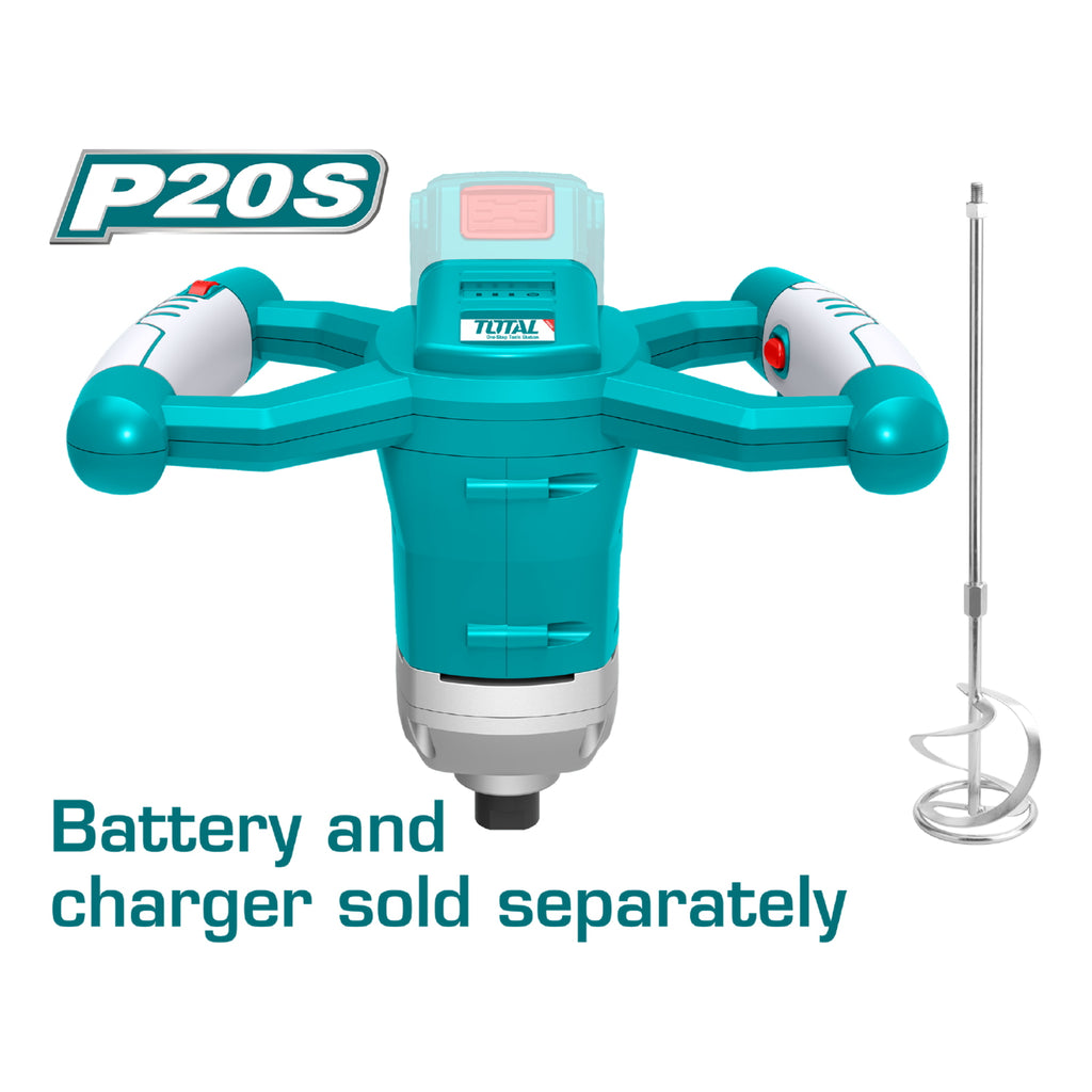 Mezclador para Mortero Lithium-Ion de Bateria de 20 V. No incluye Bateria ni Cargador. Velocidad max. sin carga: 0-650 rpm. Hilo de la almohadilla mezcladora: M14.Usar mezclador M14 codigo TAC331120