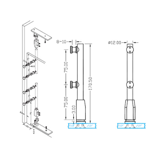 Mini pivote Vidrio-Vidrio para vitrinas 8-10mm. (par).