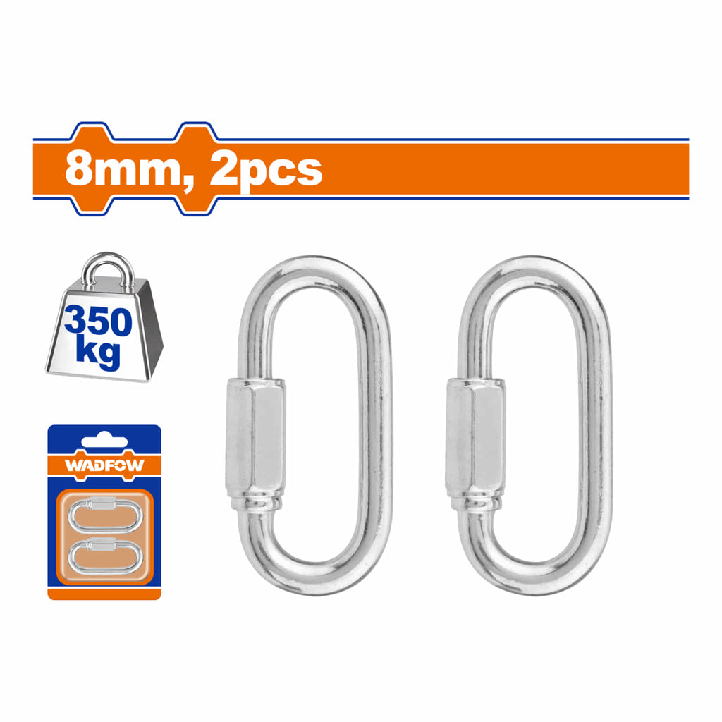 | Características | Mosquetones de Seguridad Carga máx 350Kg. Acero al carbono. Set de 2 piezas. |