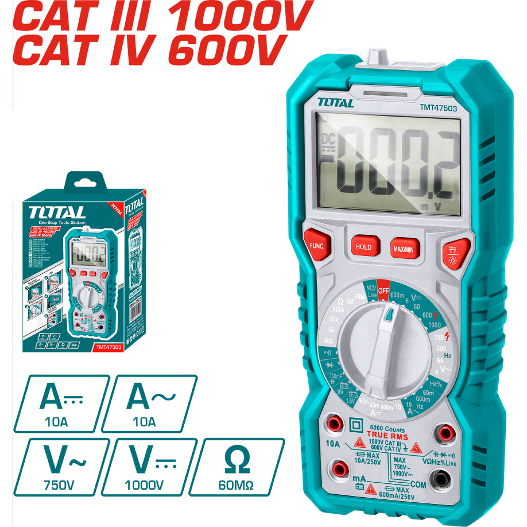 Multimetro Digital 6000 Counts RMS. Detección De Voltaje Sin Contacto. Indicador De Baja Bateria.